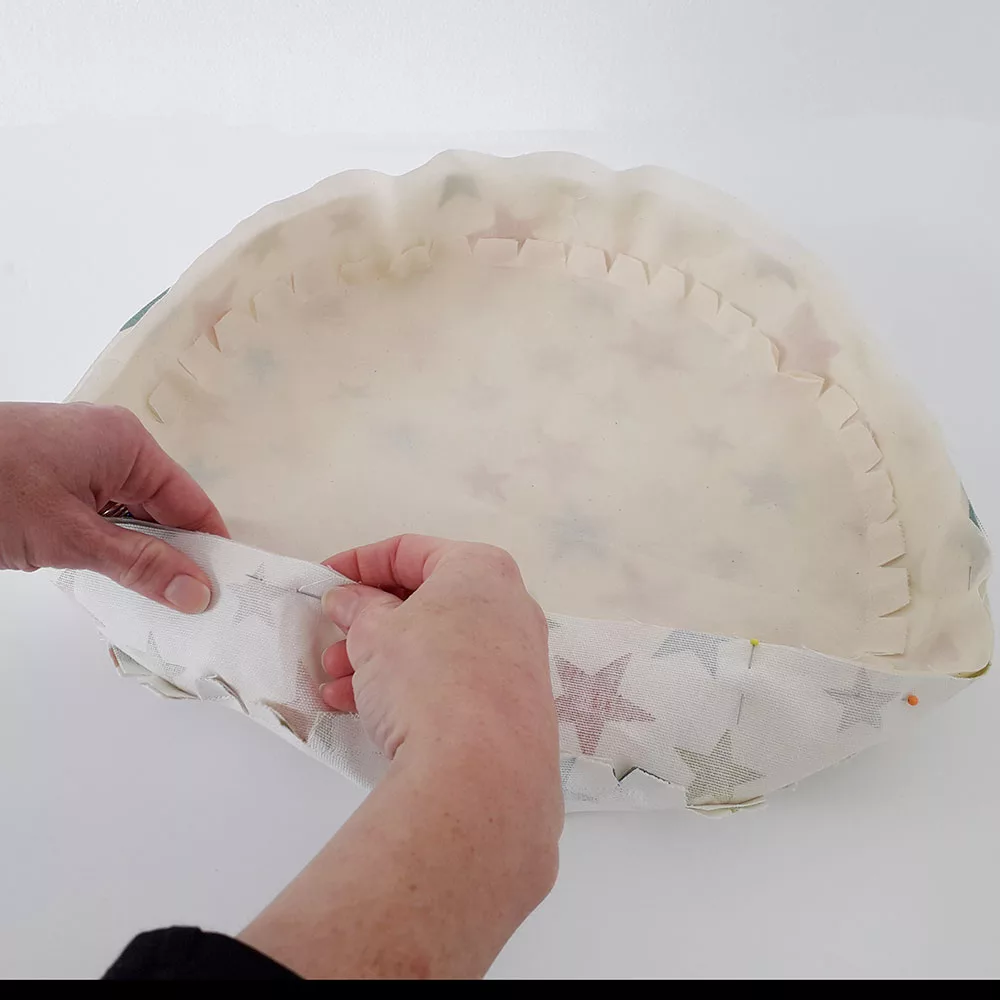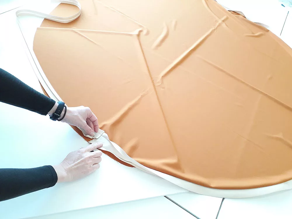 13. Place the coated fabric somewhere flat to cool fully and set the adhesive.