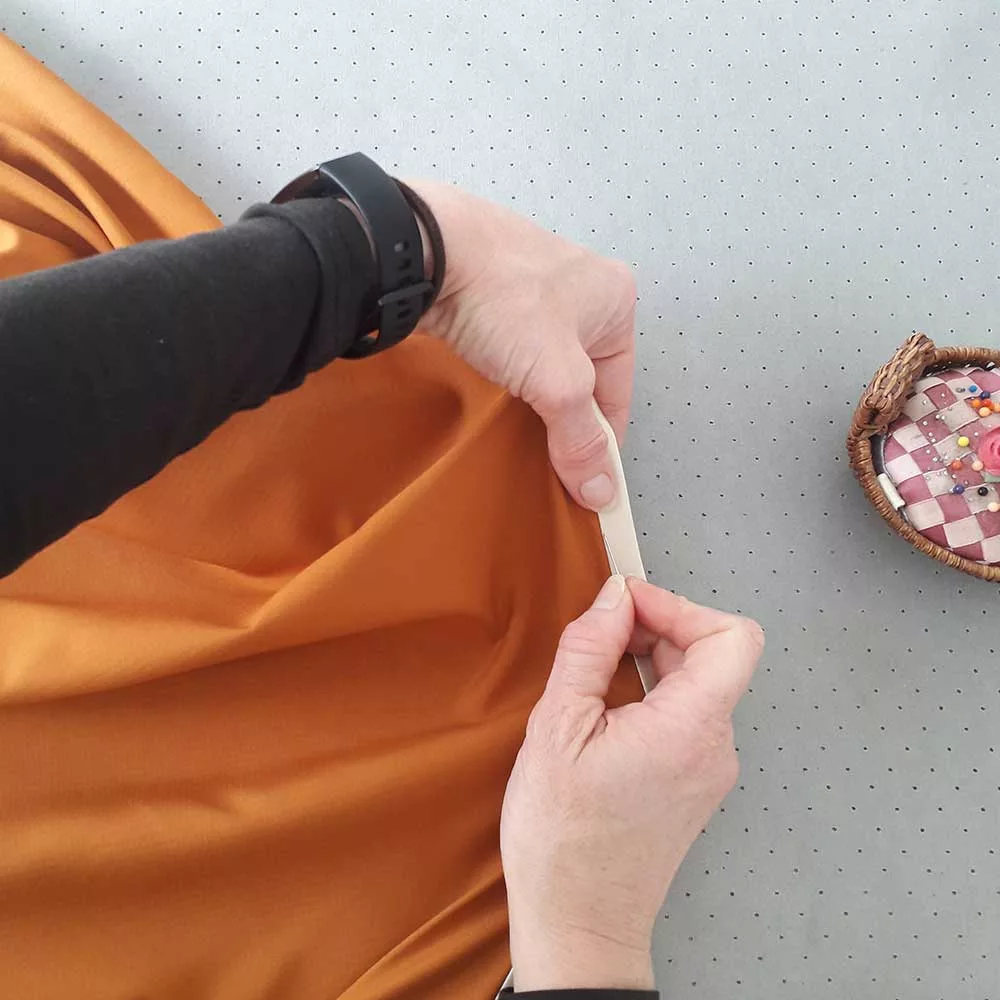 - Test interlining on a 2″ test square of the fabric to check suitability