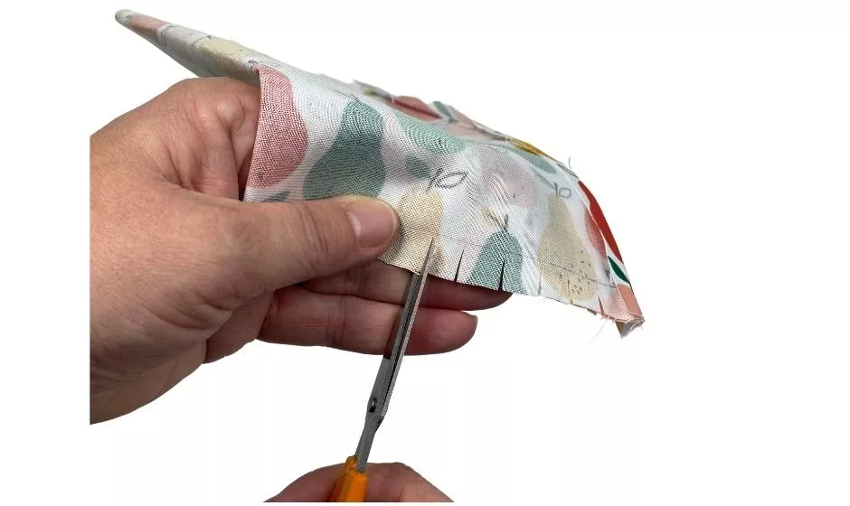 11) On both the lining & outer panels snip around the bottom edges; make cuts that stop 2mm from the 1cm marked line, approx 1cm apart