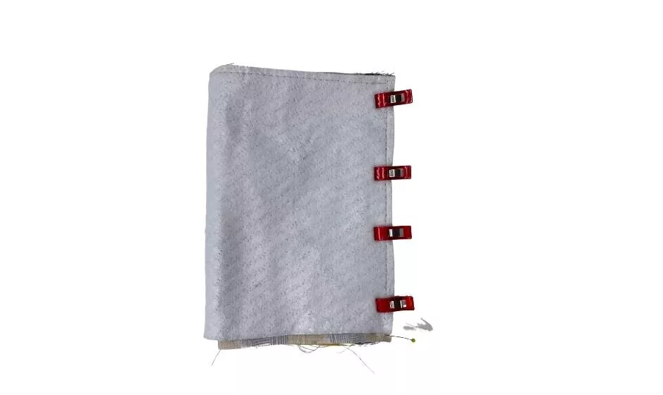- 6. Baste the Insul-bright base onto the lining fabric base. NB: basting the Insul-Bright base to the lining & side to the outer panel makes sewing a small circle easier