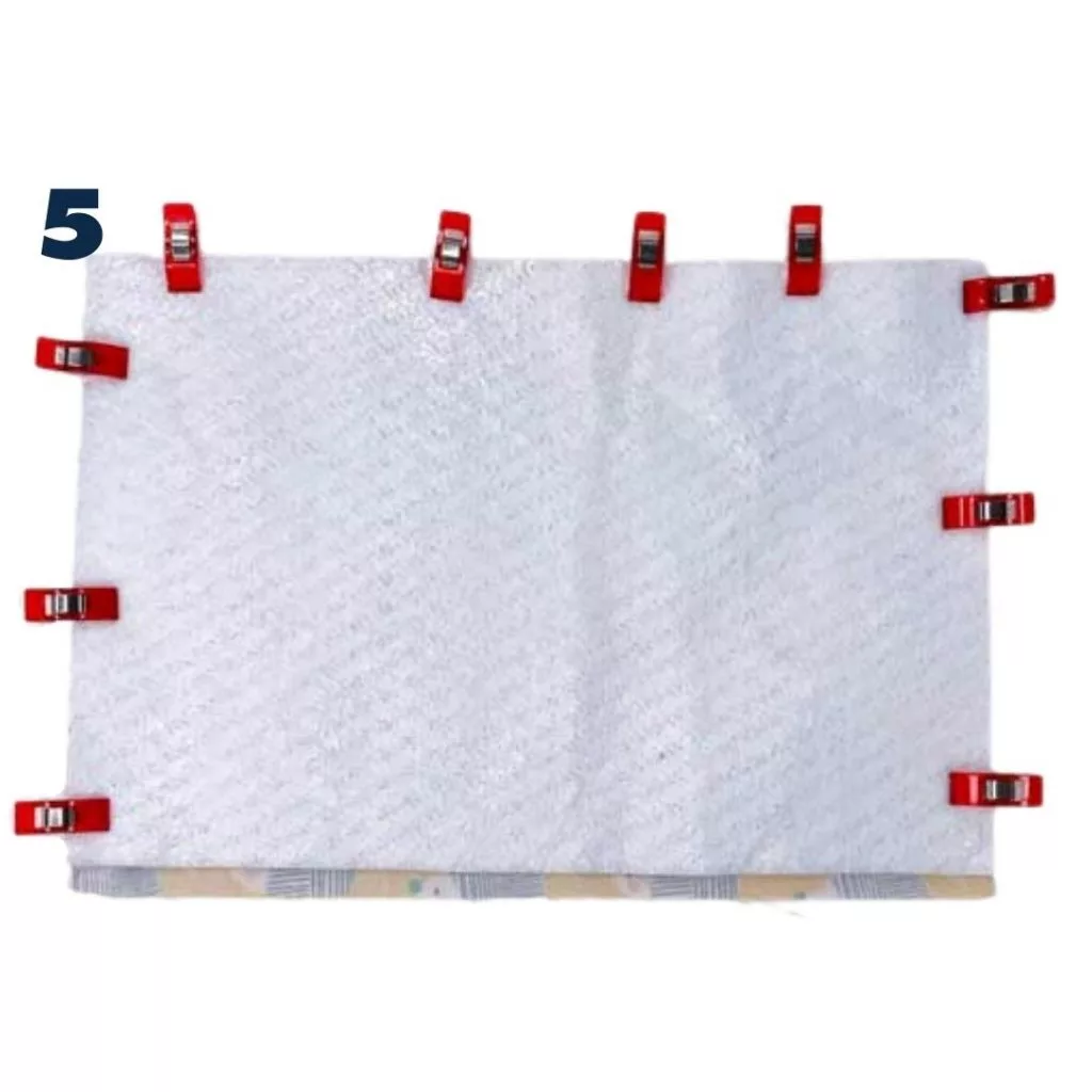 - 5. Baste the Insul-Bright in place around the top and 2 sides, 5mm from the edge. Do not baste along the bottom edge.